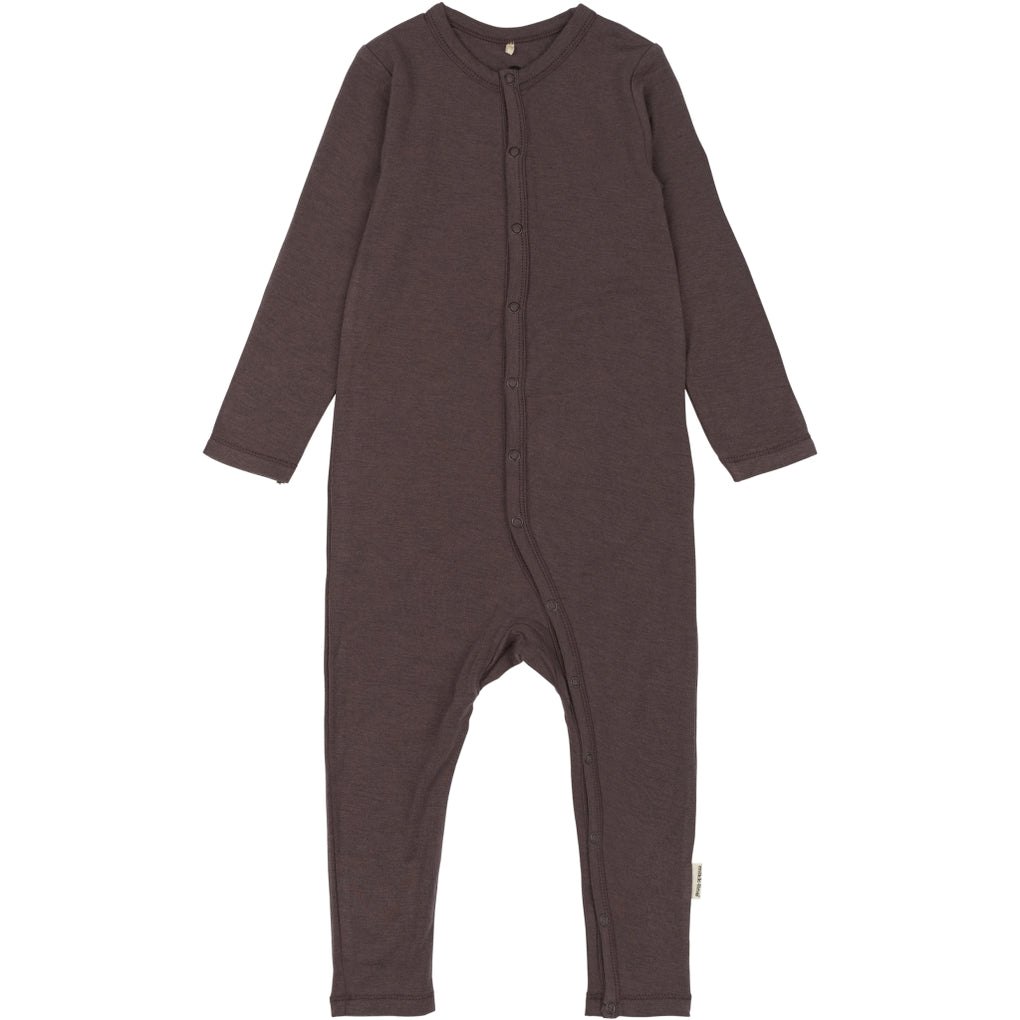 Ensfarvet langærmet uld/bambus baby heldragt fra mikk-line. Det er en blød, strækbar og holdbar dragt, der er perfekt til det lille barns hverdagsgarderobe - eller som nattøj. Dragten er lavet af en blanding af de naturlige materialer uld og bambus, tilsat spandex for stræk, så den giver barnet en høj komfort og bevægelsesfrihed. Kvaliteten er samtidig med til at sikre barnet en stabil kropstemperatur, og den er særligt velegnet til sensitiv hud.