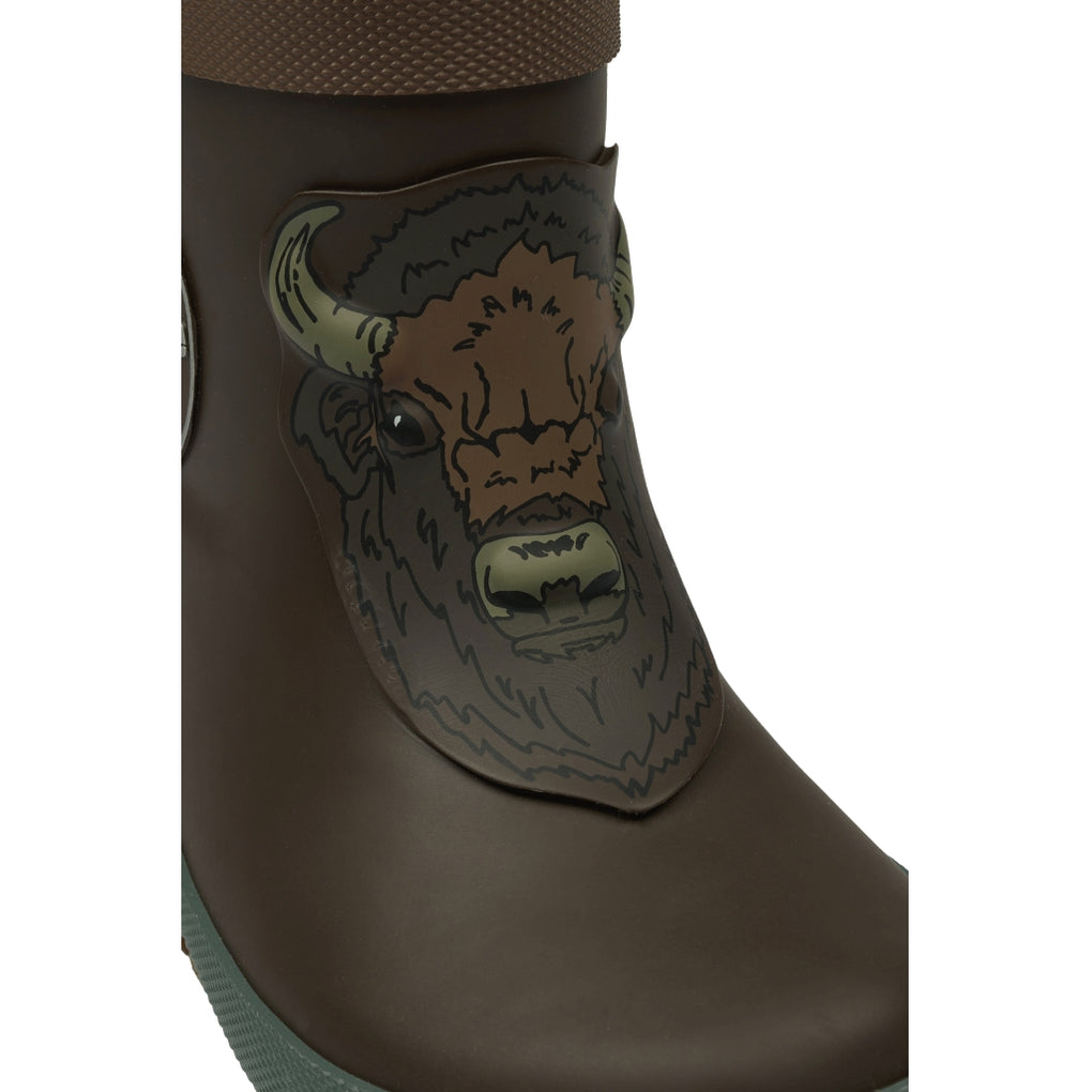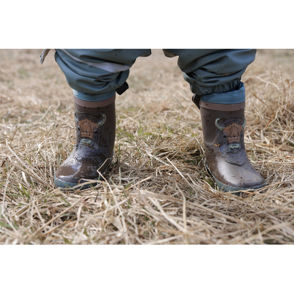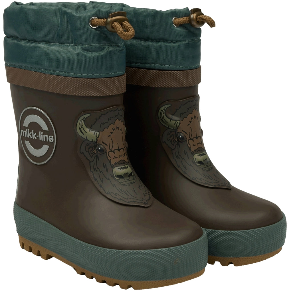 Mikk-line vintergummistøvler med lun foring og et sej 3D printdetalje af et knurrende, vildt dyr på støvleskaftet. De er lavet af naturgummi, og de er fri for ftalater. Gummistøvlerne er vandtætte, varme og praktiske til børn, der elsker at hoppe i vandpytter eller lege i vådt græs, sand eller sne. Disse gummistøvler fås i størrelse 19-38.