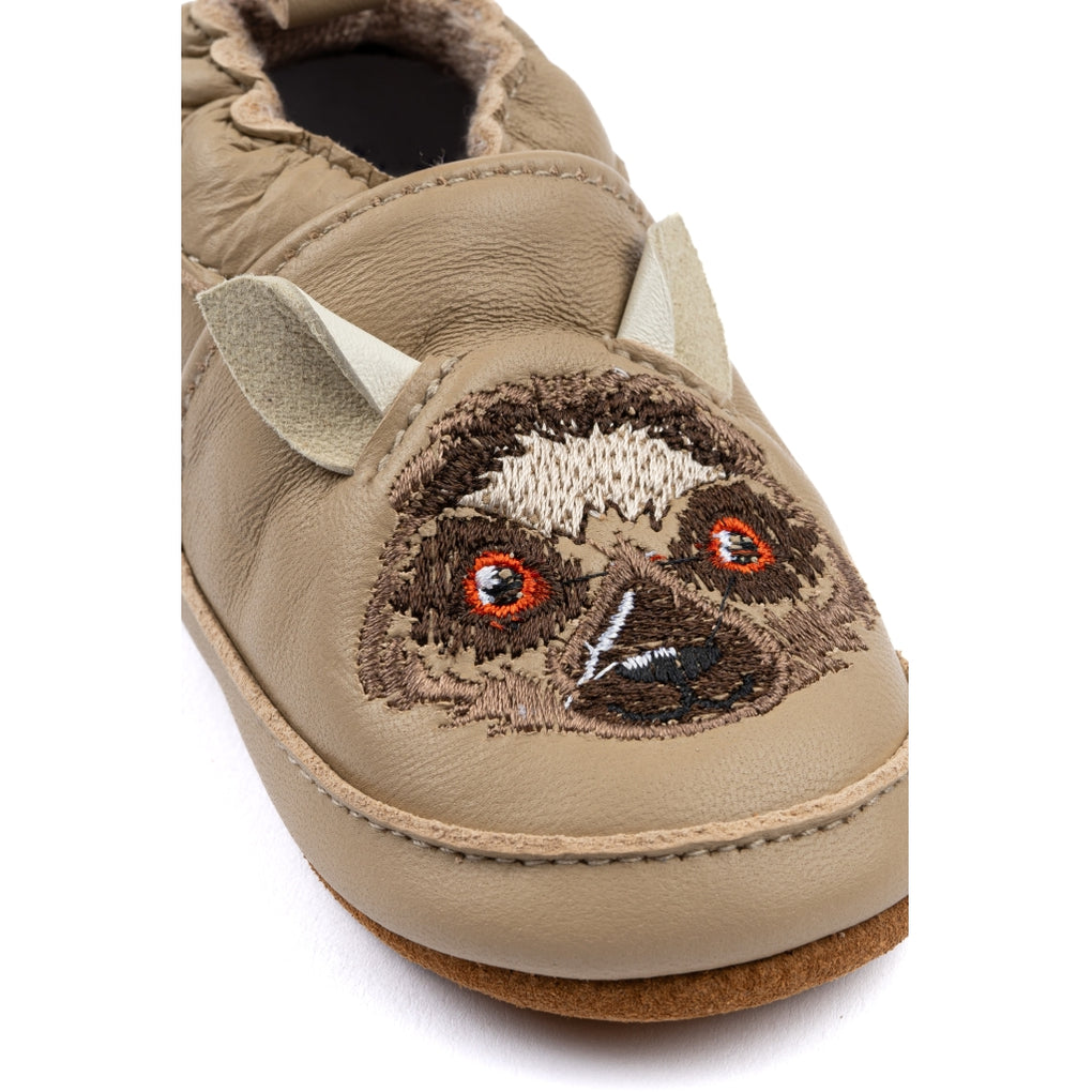 Bedårende læderfutter med dyremotiv fra mikk-line til babyer og børn. Disse fine hjemmesko holder barnets små fødder dejligt lune, samt mindsker risikoen for at barnet glider og falder på glatte gulve. Futterne har en bredere pasform end lignende indendørssko, så der god plads til den lille fod. De har samtidig et godt greb om anklerne, og glider derfor ikke af de små fødder.