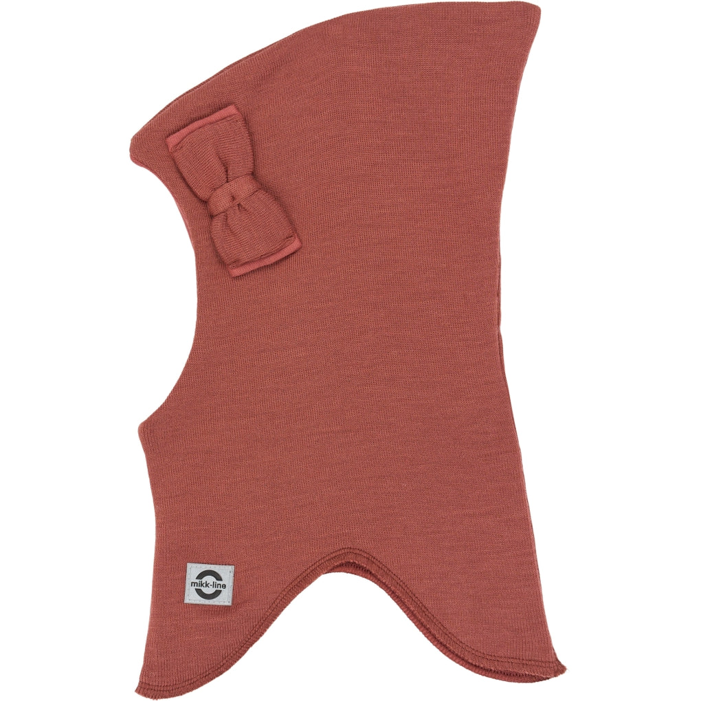 Ensfarvet mikk-line elefanthue med en fin sløjfe på fronten og vindstop ved ørerne. Elefanthuen er lavet af bomuld på indersiden og en blanding af merinould og akryl på ydersiden. Denne lækre vinterhue dækker det meste af barnets hoved, hals og ansigt, så den beskytter barnet mod kulde og vind, når det leger og udforsker naturen under den åbne himmel. Huen fås i dobbeltstørrelser fra 74/80 til 134/140 cm (ca. 9 måneder til 10 år).