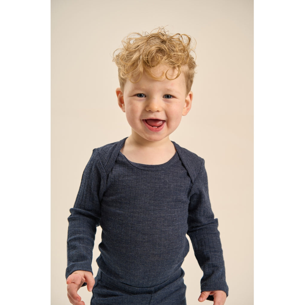 Uld/Bambus Bodystocking Langærmet (Mønstret) - Melange Blue Nights