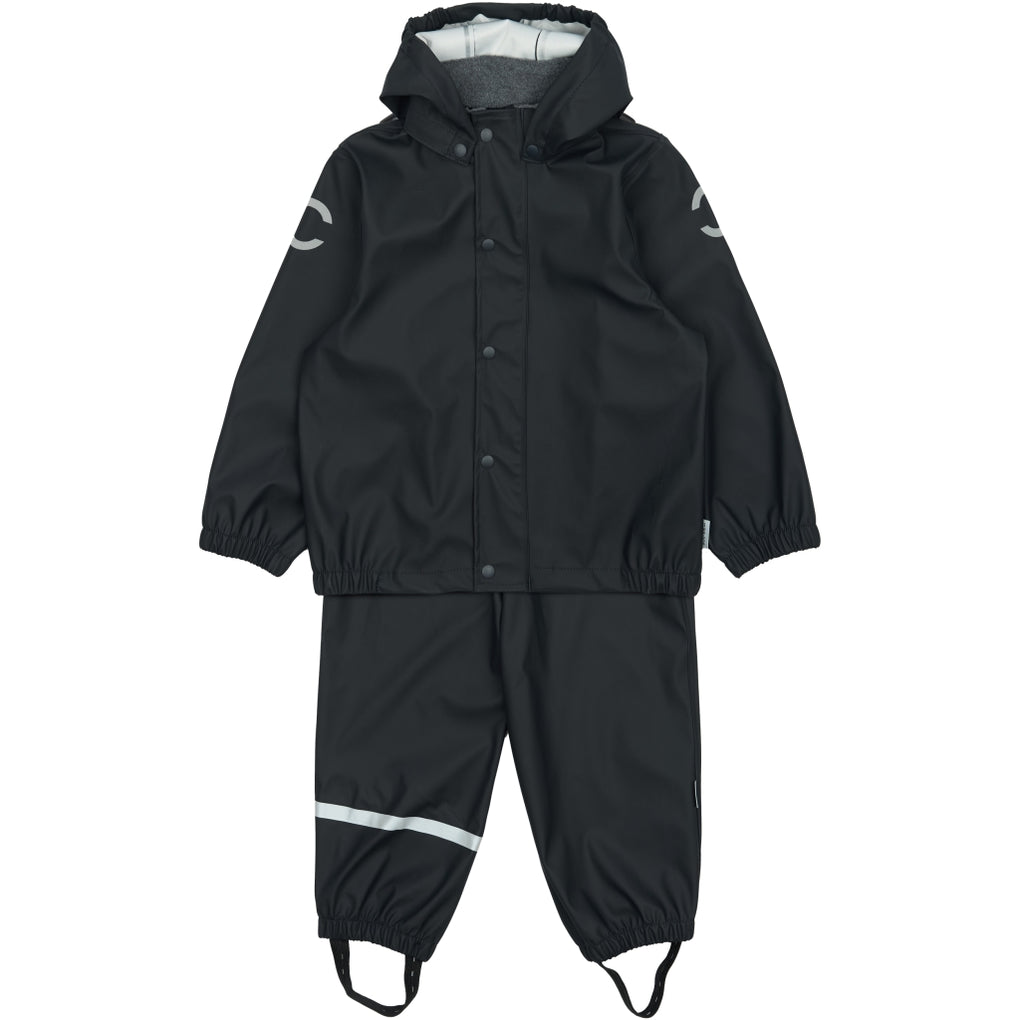 Klassisk PU regntøj med seler fra mikk-line. Sættet består af en vandtæt regnjakke og regnbukser, der begge er lavet af blødt PU-materiale. Regntøjet er skabt til at børn kan trodse regnen og have det sjovt med at hoppe i vandpytter, glide ned ad den våde rutsjebane, lege i den våde sandkasse osv. Placer de justerbare fodstropper under støvlerne, for at holde fødderne tørre og undgå at bukserne glider op. Selerne kan tilpasses efter behov, og så har sættet har et indvendigt navneskilt med plads til mere end ét navn, så giv det gerne videre, så endnu et barn kan få glæde af det.