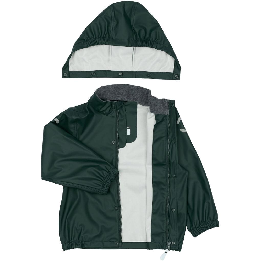 Klassisk PU regntøj med seler fra mikk-line. Sættet består af en vandtæt regnjakke og regnbukser, der begge er lavet af 66% GRS Recycled Polyester, 34% Polyurethane. Regntøjet er skabt til at børn kan trodse regnen og have det sjovt med at hoppe i vandpytter, glide ned ad den våde rutsjebane, lege i den våde sandkasse osv. Placer de justerbare fodstropper under støvlerne, for at holde fødderne tørre og undgå at bukserne glider op. Selerne kan tilpasses efter behov, og så har sættet har et indvendigt navneskilt med plads til mere end ét navn, så giv det gerne videre, så endnu et barn kan få glæde af det.