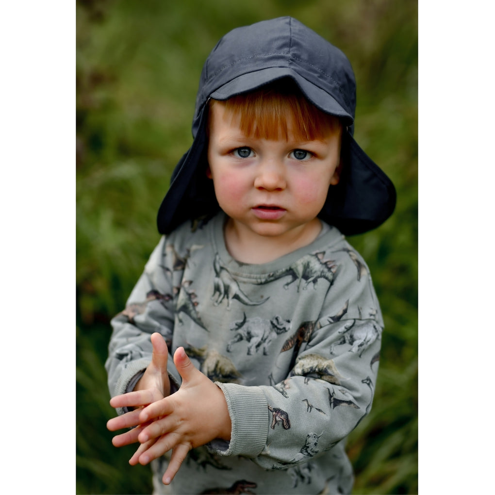 Hatten er tætvævet og overfladebehandlet med UV50+ beskyttelse. Det betyder, at langt de fleste af solens stråler blokeres, og barnets ansigt og hoved beskyttes mod solens farlige stråler. Så brug den, når dit barn leger udendørs i den stærke forårs- og sommersol. Husk også altid at give dit barn masser af solcreme på og påføre det regelmæssigt.