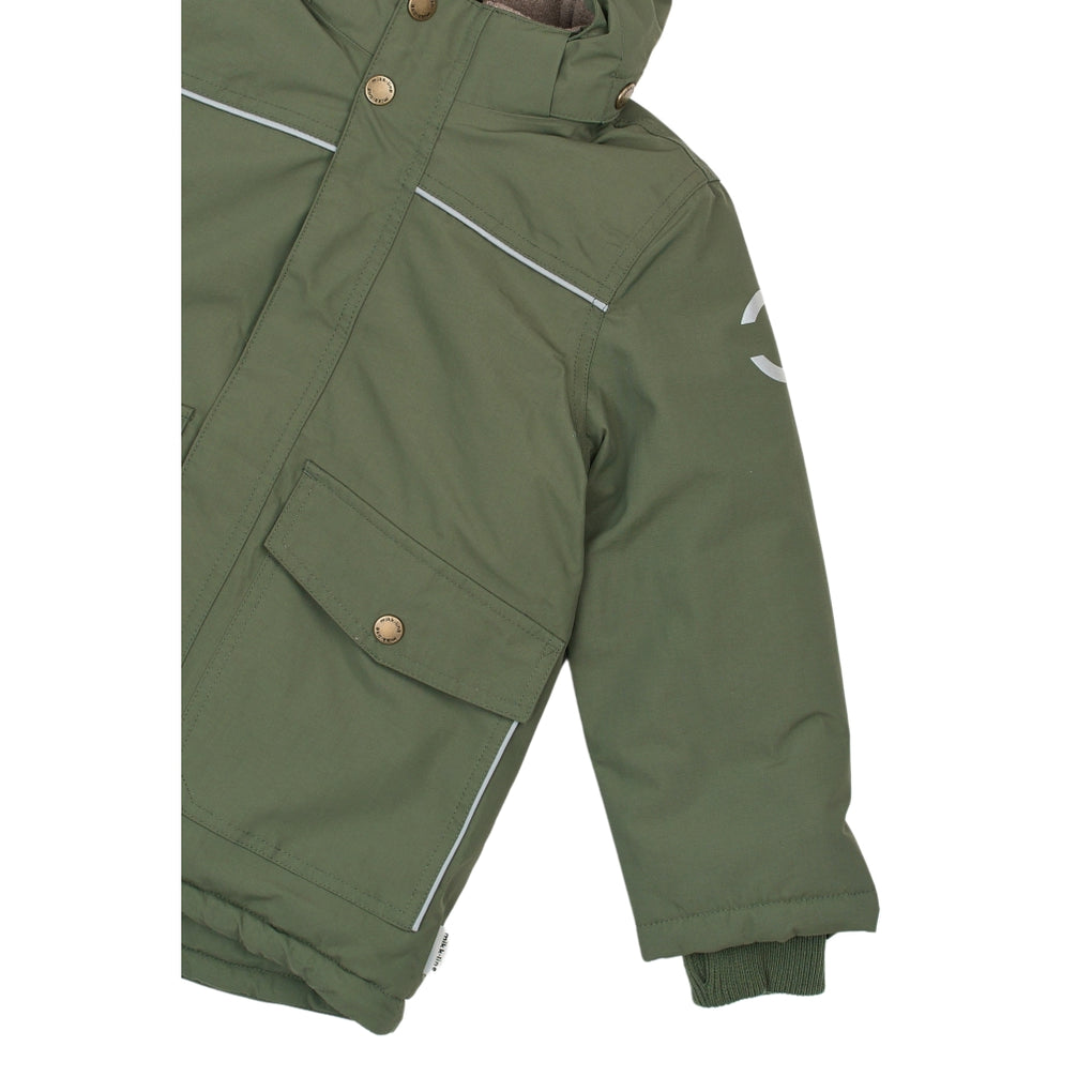 Mikk-line vinterjakke til drenge i størrelse 98-152 cm (ca. 3-12 år), der elsker leg og eventyr i naturen og under åben himmel. Det er en holdbar nylon vinterjakke af høj kvalitet og enkelt design, der holder barnet varmt og komfortabelt i det kolde efterårs- og vintervejr med vind, regn og sne. Jakken er lavet af nylon og polstret med polyesterfyld. Hætten og kroppen har blødt fleece foer, hvorimod ærmerne og lommerne har en glat og gnidningsfri indvendig overflade. Vi har anvendt Solution Dye til farvning af det glatte for, da det bl.a. mindsker forbruget af vand i produktionen. Derudover er jakken imprægneret med fluorfri BIONIC-FINISH® ECO imprægnering.