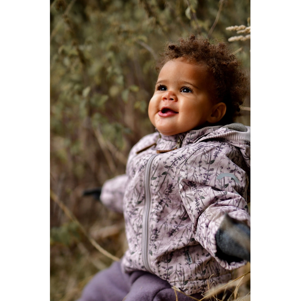 Mikk-line baby jakke med et fint, blomstret print. Denne lækre polyester jakke til børn findes i størrelse 74-104 cm (ca. 6 mdr. - 4 år). I denne vinterjakke kan barnet lege og udforske naturen under den åbne himmel i alt slags vejr i løbet af de kolde og våde efterår- og vintermåneder. Jakken indeholder genanvendt polyester og er naturligvis fluorfri med BIONIC-FINISH® ECO imprægnering.