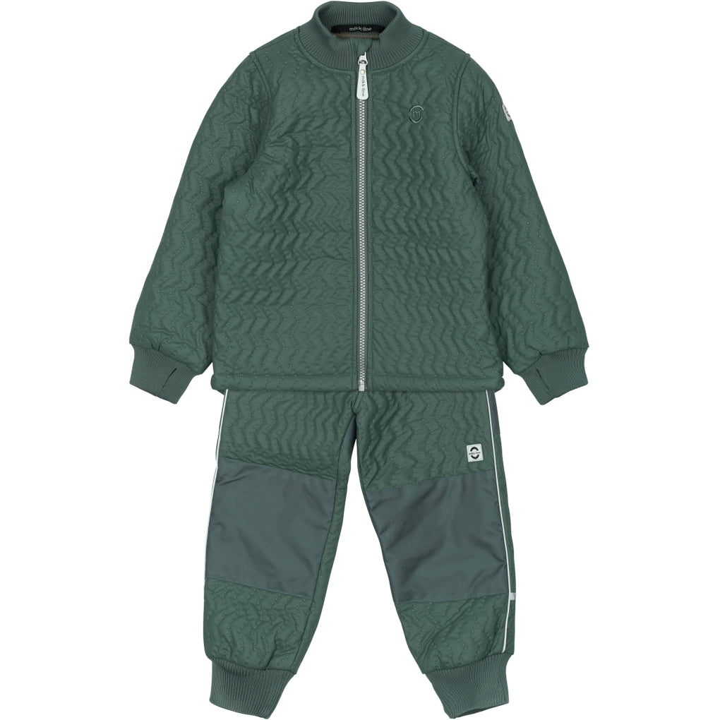 Dette bløde DUVET sæt er det varmeste termotøj fra mikk-line, da jakken har et lunt fleecefor. Sættets overflade er beklædt med silkeblødt PU læder, som er vandafvisende, da det er imprægneret med BIONIC-FINISH® ECO og certificeret med OEKO-TEX® Standard 100. Sættet har desuden et lunt isolerende fyld, men lav åndbarhed. DUVET termosættet er designet til at barnet kan holde varmen og nyde udendørseventyr imellem sæsonerne med omskifteligt, køligt og fugtigt vejr. Indvendigt har sættet et navneskilt med plads til mere end ét navn, så giv gerne sættet videre så endnu et barn kan få glæde af det.
