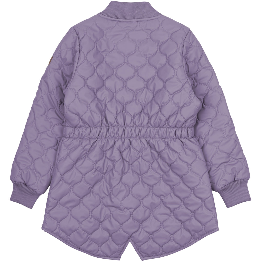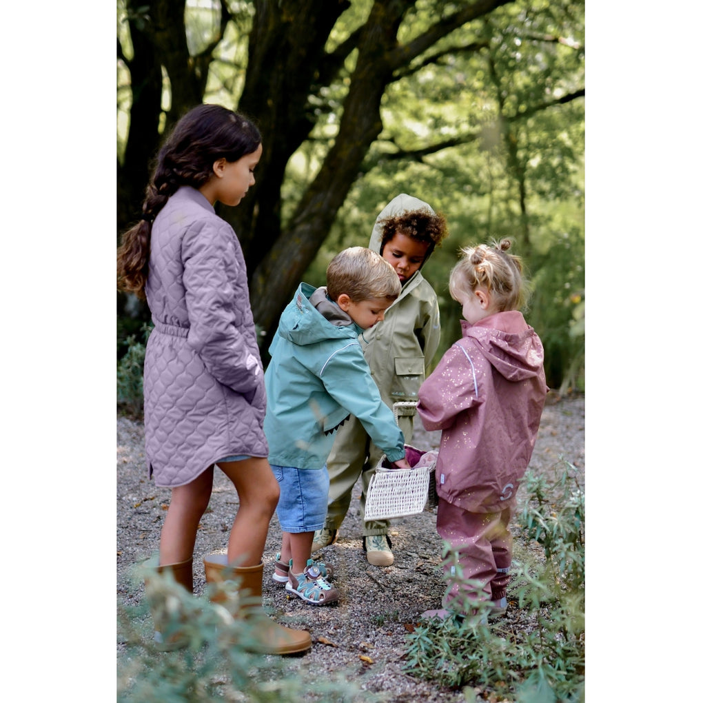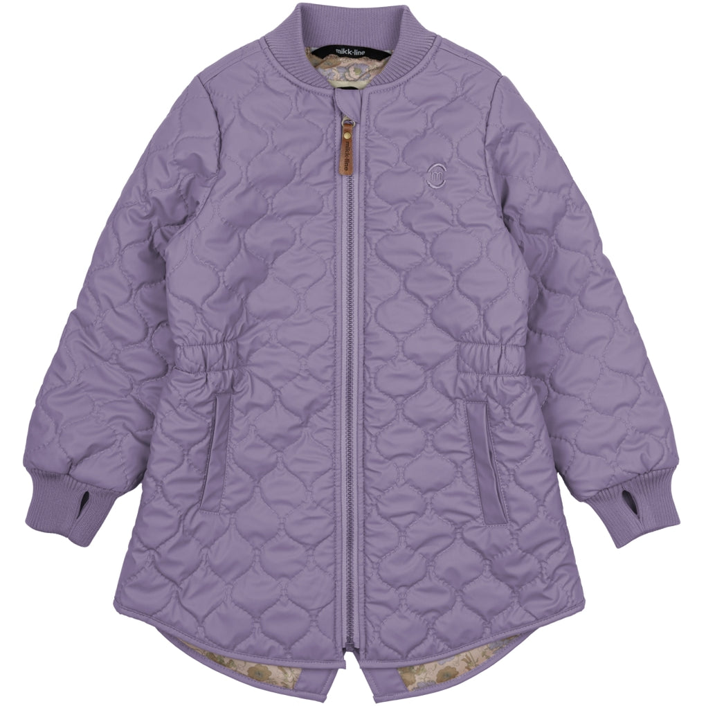 Smuk ensfarvet og quiltet DUVET termofrakke fra mikk-line. Jakkens overflade er beklædt med silkeblødt PU læder, som er vandafvisende, da det er imprægneret med BIONIC-FINISH® ECO. Den har et feminint blomsterprint på indersiden, lunt isolerende fyld, men lav åndbarhed. Det er en stilren, blød og funktionel overgangsjakke til piger, da den er oplagt til at holde varmen og nyde udendørseventyr imellem sæsonerne med omskifteligt, køligt og fugtigt vejr. Indvendigt har frakken et navneskilt med plads til mere end ét navn, så giv den gerne videre så endnu et barn kan få glæde af den.