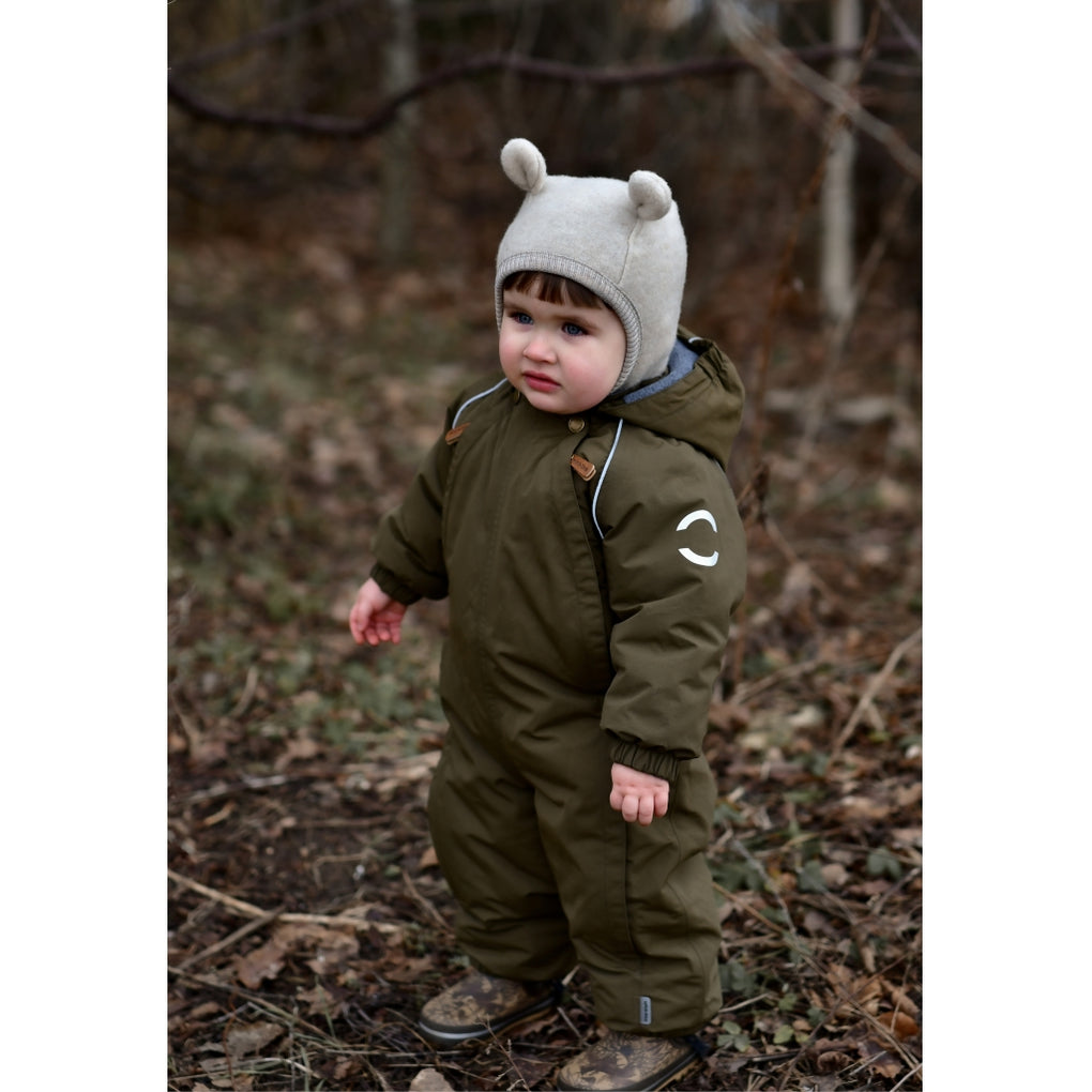 Mikk-line børstet uld elefanthue med ører er en sød og behagelig vinterhue til nyfødte, babyer og tumlinger i størrelser fra 50-104 cm. Elefanthuen er lavet af det fineste og blødeste mulesing-fri merinould, der er ikke kradser. Den dækker det meste af hovedet, halsen og ansigtet, og da den er lavet af uld, er den åndbar og vil bidrage til at barnet bevarer en stabil kropstemperatur. Huen er særligt nyttig til en lur, gåtur eller køretur i det kolde efterår- og vintervejr.