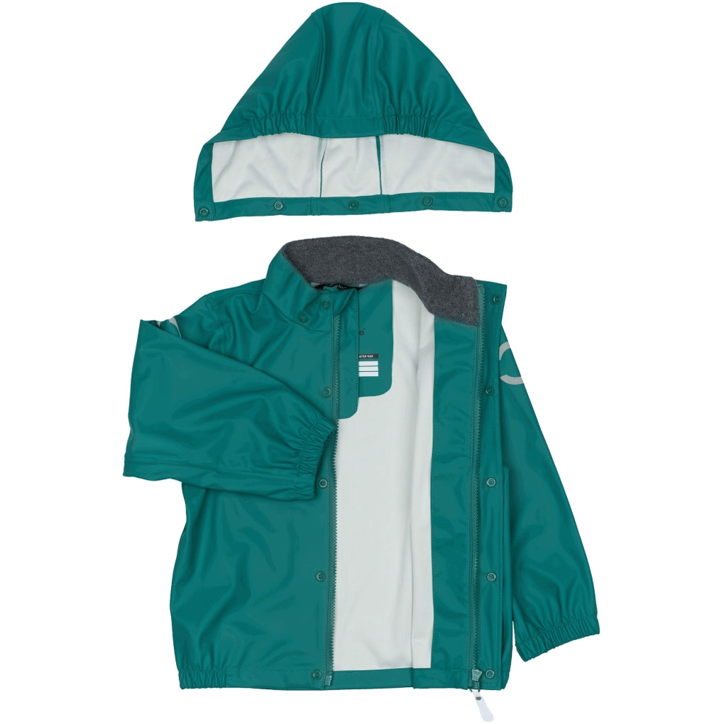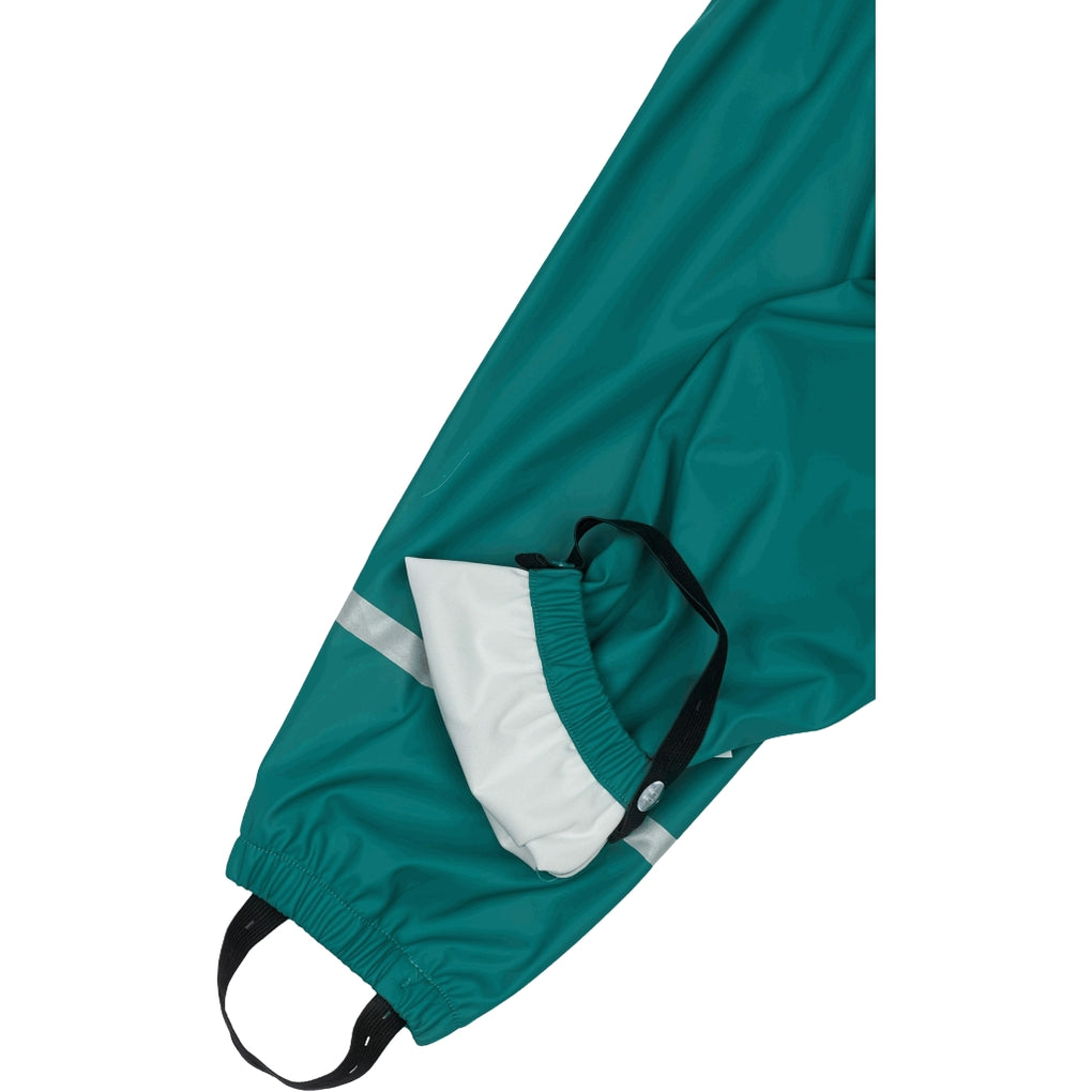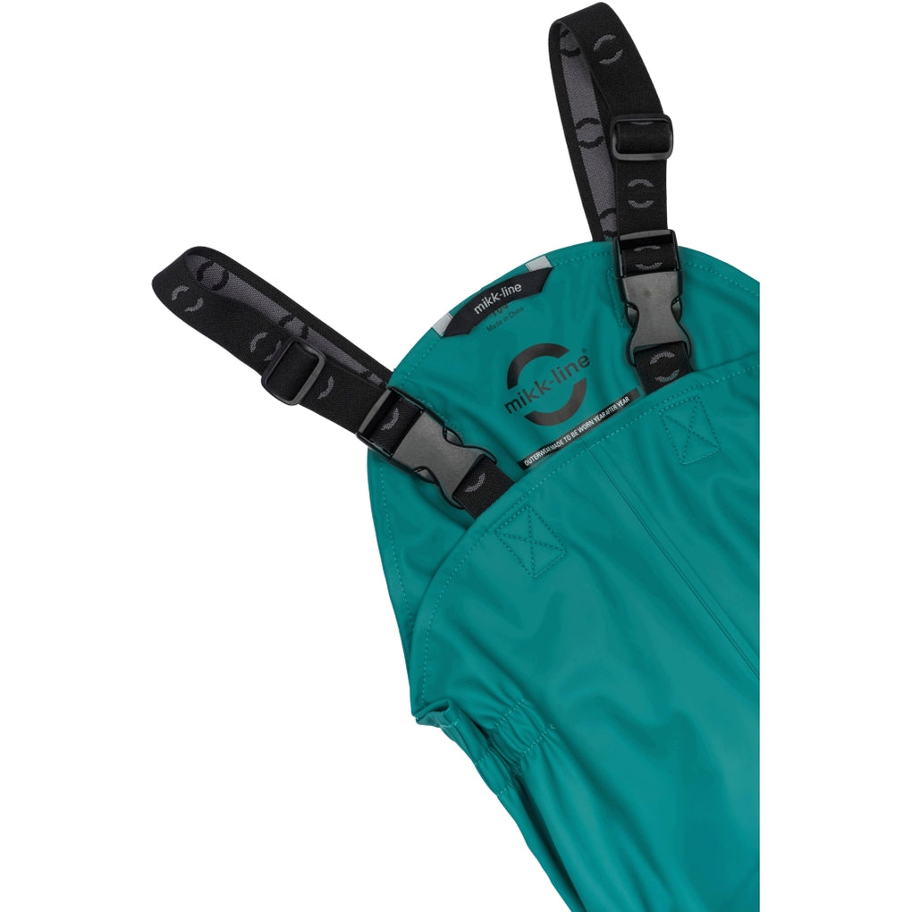 Klassisk PU regntøj med seler fra mikk-line. Sættet består af en vandtæt regnjakke og regnbukser, der begge er lavet af 66% GRS Recycled Polyester, 34% Polyurethane. Regntøjet er skabt til at børn kan trodse regnen og have det sjovt med at hoppe i vandpytter, glide ned ad den våde rutsjebane, lege i den våde sandkasse osv. Placer de justerbare fodstropper under støvlerne, for at holde fødderne tørre og undgå at bukserne glider op. Selerne kan tilpasses efter behov, og så har sættet har et indvendigt navneskilt med plads til mere end ét navn, så giv det gerne videre, så endnu et barn kan få glæde af det.