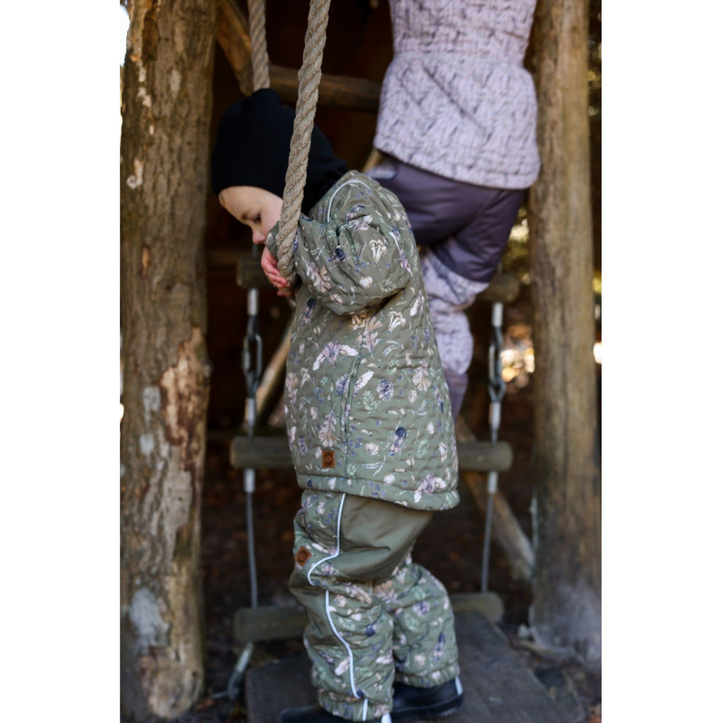 Thermal+ sæt fra mikk-line med et charmerende printmønster (AOP). Dette isolerende termosæt har vandtæt stof, der er imprægneret med BIONIC-FINISH® ECO. Sømmene er dog ikke vandtætte, men åndbarheden er god. Alt i alt er det et stilfuldt og funktionelt termosæt, der vil holde pigen varm og tør, så hun kan nyde udendørseventyr imellem sæsonerne med omskifteligt, køligt og fugtigt vejr. Sættet har også et indvendigt navneskilt med plads til mere end ét navn, så giv det gerne videre så endnu et barn kan få glæde af det.