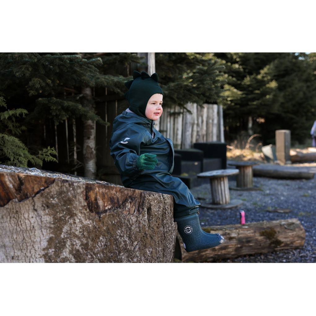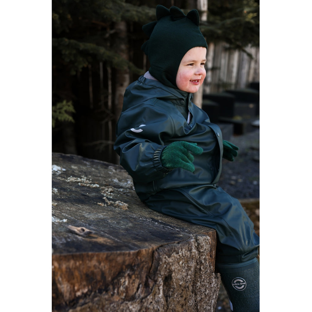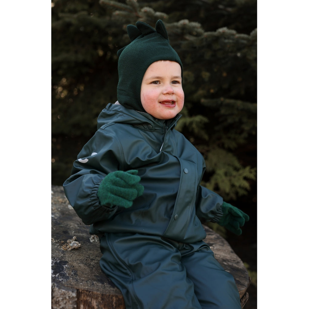 Ensfarvet mikk-line elefanthue i dobbeltlag og med seje dinosaur detaljer. Elefanthuen er lavet af bomuld på indersiden og en blanding af merinould og akryl på ydersiden. Denne lækre vinterhue dækker det meste af barnets hoved, hals og ansigt, så den beskytter barnet mod kulde og vind, når det leger og udforsker naturen under den åbne himmel. Huen fås i dobbeltstørrelser fra 74/80 til 134/140 cm (ca. 9 måneder til 10 år).