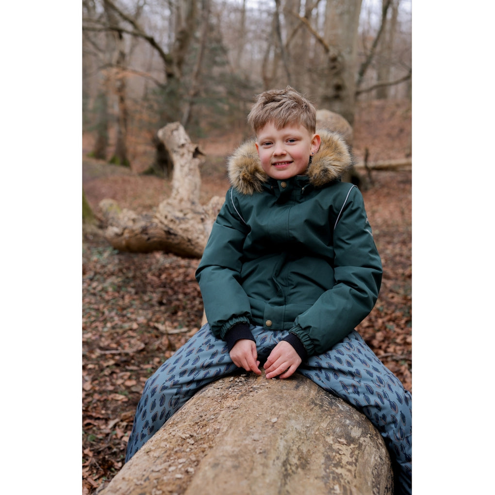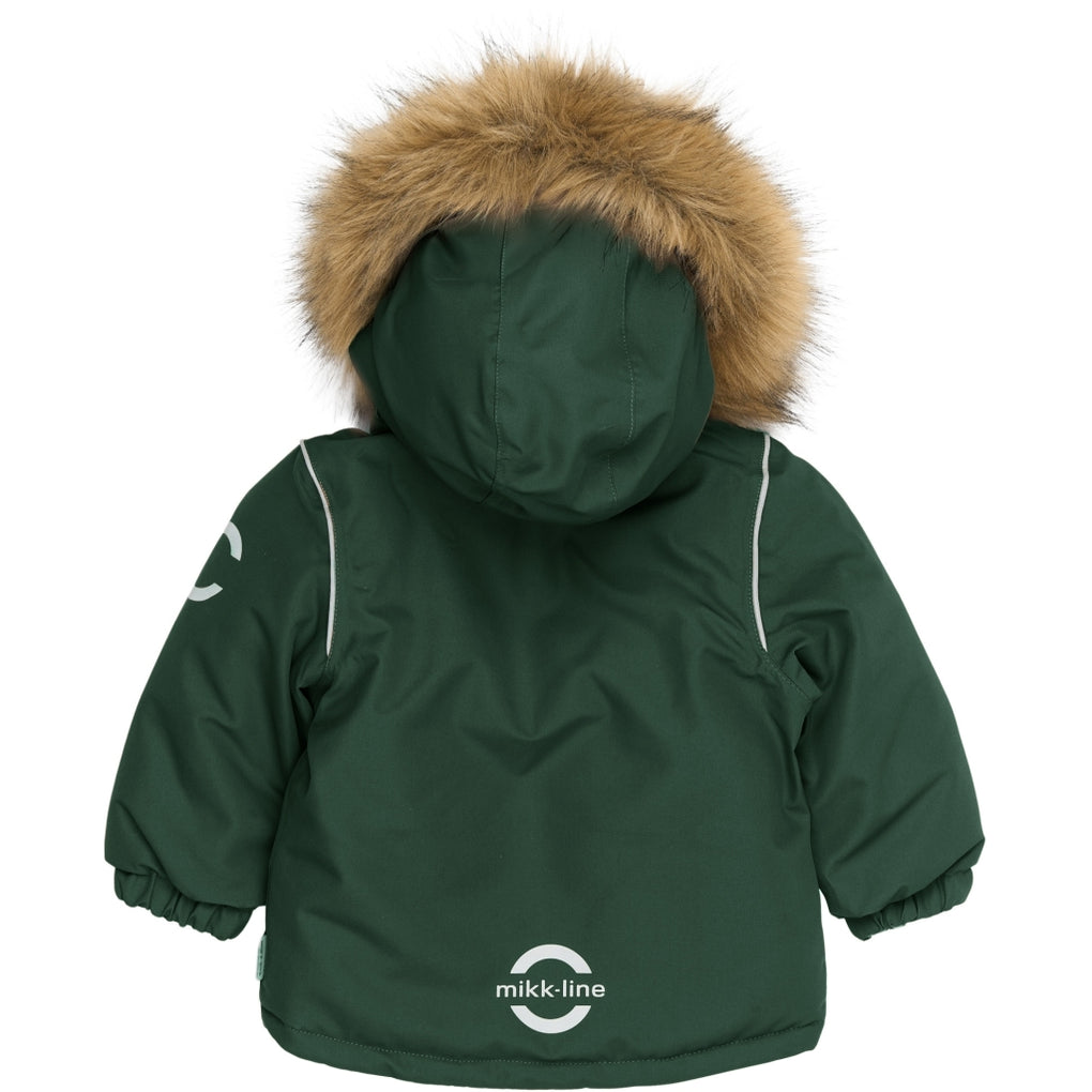 Ensfarvet mikk-line vinterjakke til børn, der elsker leg og eventyr i naturen og under åben himmel. Det er en moderne, letvægts vinterjakke, der giver varme og komfort til dit barn i det kolde efterårs- og vintervejr med vind, regn og sne.