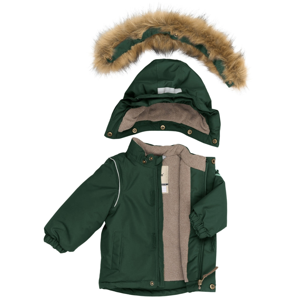 - Vindtæt og isolerende med let og fyldig polyesterfyld, der holder barnet varmt og beskyttet mod vinden.